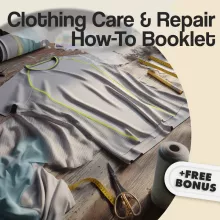 Don’t let your favorite clothes wear out before their time. Download the Clothing Care & Repair How-To Booklet now and start enjoying a wardrobe that looks better, lasts longer, and saves you money. Take the first step toward sustainable fashion and stress-free clothing care today!