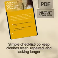 Discover how to extend the life of your favorite outfits with the Clothing Care & Repair How-To Booklet. This easy-to-follow digital download is designed as a practical checklist filled with garment care and repair tips. Whether you’re looking to master laundry basics, handle quick fixes, or simply get the most out of your wardrobe, this guide helps you protect your investment in clothing while embracing sustainable fashion habits. Perfect for busy individuals, students, parents, or anyone who wants to keep their wardrobe in top shape without spending extra on replacements.