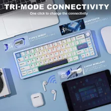 This mechanical keyboard is a game-changer for users who demand versatility and quality. Its tri-mode wireless functionality lets you effortlessly switch between devices—whether you’re on your desktop, laptop, tablet, or smartphone. The compact 65% layout with 66 keys and a metal multi-function knob ensures that you get all the essential keys without the clutter, making it ideal for limited desk space.
