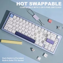 - 66-Key 65% Layout: A compact layout that saves desk space without sacrificing essential keys like arrows and numbers.