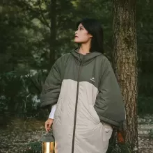 What sets this apart is its convertible design. Instead of carrying a blanket, poncho, and sleeping bag separately, this product combines all three into one smart, stylish, and space-saving item. The cardigan cut offers easy movement and a sleek silhouette, while the water-resistant shell keeps you protected from the elements.
