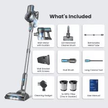 Thanks to its 6-in-1 design, you can use this vacuum for more than just floors. It easily transforms into a handheld vacuum, giving you the flexibility to clean furniture, car interiors, and even ceilings. With three suction modes and a smart LCD display, you can easily adjust the vacuum’s power to suit the task at hand. The HEPA filter captures even the smallest dust particles, ensuring a clean, allergen-free environment. Best of all, its free-standing design means you don’t have to worry about leaning the vacuum against a wall or struggling to store it in tight spaces.