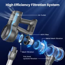 - 25Kpa Suction Power: Delivers strong suction for a deep, thorough clean on all floor types, including carpets and hardwood floors.
