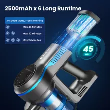 - 45-Minute Max Runtime: Offers extended cleaning time on a single charge, allowing you to clean your entire home without interruption.