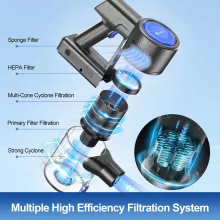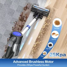 Keep your home spotless with this high-performance cordless vacuum cleaner that combines power, versatility, and convenience. With an impressive suction power of up to 25KPa and a durable 235W brushless motor, it easily tackles dust, crumbs, pet hair, cat litter, and other messes on hardwood floors, carpets, and every surface in between. Its lightweight design makes it easy to carry and maneuver, perfect for quick clean-ups or whole-house cleaning sessions.
