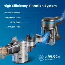 The lightweight design and cordless feature make it easy to use in tight spaces or carry around from room to room. The HEPA filter captures dust and allergens, improving air quality as you clean. Plus, the clog reminder ensures that your vacuum stays in optimal condition for consistent cleaning performance.
