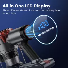 What makes this vacuum special is its intelligent LED display. It keeps you updated on battery life and suction settings, so you always stay in control. The V-shaped anti-tangle brush head is designed to lift stubborn debris without getting clogged—perfect for homes with pets. With a swivel angle of 90°/165° and four built-in LED lights, you can reach every dark corner under beds, furniture, or around tight edges with ease.