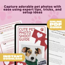 Unlike generic photo guides, the Cute Pet Photo Shoot Guide is made specifically with pets in mind — because photographing animals is a whole different ballgame! It’s not just about technical skills, it’s about capturing their personality. You’ll learn how to make your pet feel at ease, catch spontaneous moments, and show off their charm through your lens. It’s the ultimate checklist and creative playbook in one.