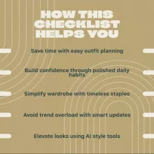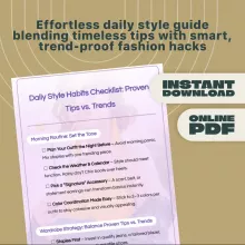 Unlike generic style guides, the Daily Style Habits Checklist: Proven Tips vs Trends is a practical, habit-building resource that combines timeless fashion wisdom with modern AI tools. It’s not about buying more—it’s about maximizing what you already own while strategically adding trend pieces that truly work for you. Perfect for busy professionals, fashion lovers, or anyone wanting a simplified approach to personal style.