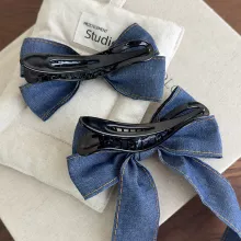 Bring charm and elegance to your hairstyle with these Korean Fashion Denim Blue Ribbon Bow Hair Clips. Crafted in a soft cotton blend and styled in a sweet bow design, these duckbill barrettes are a must-have hair accessory for any fashion-forward woman or girl. The lovely denim blue tone gives them a trendy yet timeless vibe, making them the perfect accent piece whether you’re dressing up for a date, a party, or a casual day out.