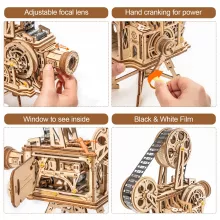Perfect for ages 14 and up, or younger builders with a little help from an adult, this 3D puzzle takes around four hours to assemble. The included English instructions are clear and easy to follow, with each piece labeled for a smooth assembly process. No glue needed—each piece fits securely with precision-cut buckles. Once assembled, turn the hand crank to bring your projector to life and watch a nostalgic black-and-white reel light up your wall.
