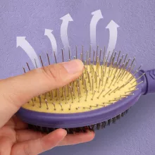 - Double-sided brush head – One side removes loose hair and tangles, the other smooths and massages