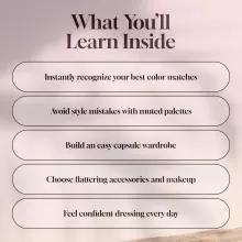 Unlike generic style ebooks, Dressing in Harmony with Soft Summer Style Guide is tailored specifically to your soft summer palette. With real-life examples, detailed color guidance, and practical wardrobe-building tools, it offers more than inspiration—it gives you a plan.