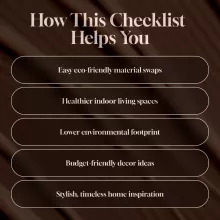 This guide is perfect for eco-conscious homeowners, renters, interior design enthusiasts, and anyone looking to bring more sustainability into their everyday living spaces. Whether you’re just starting your green journey or already passionate about eco-friendly living, this checklist will help you make smarter, greener choices.