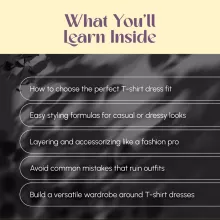 - Chapter 4: Your Next Steps to T-Shirt Dress Confidence – Quick styling formulas, prompts for tricky outfit decisions, and capsule wardrobe ideas.