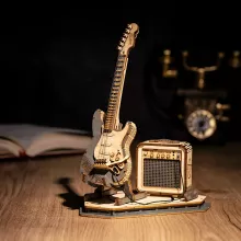 Every piece of this wooden puzzle is precisely crafted to create a realistic electric guitar model. It’s beginner-friendly and can be assembled in just 1.5 hours, making it a quick yet rewarding project. The guitar features laser-cut wooden components, including detailed strings, pickups, a headstock, and a body with an amplifier for added authenticity.