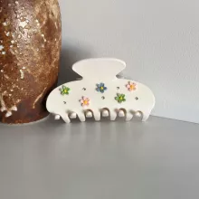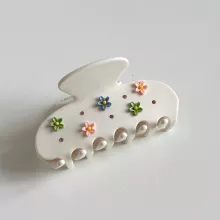 Upgrade your hair accessory collection with this timeless flower acetate hair claw clip. Its combination of beauty, durability, and comfort makes it a must-have for every season. Treat yourself to a stylish piece that effortlessly blends function and fashion. Order yours today and enjoy the perfect mix of charm and practicality.