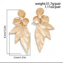 - Design: Geometric floral drop with pearl center and leaf pendant