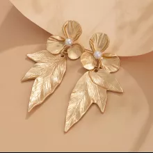 Crafted with high-quality materials, these drop earrings bring an air of refinement to any look. The imitation pearls are delicately placed within a gold-colored floral frame, giving the earrings a soft, radiant charm. The leaf-shaped pendant adds a touch of nature-inspired beauty that makes each piece feel unique.