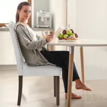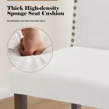Bring timeless elegance to your home with this set of two upholstered dining chairs. Designed with a sophisticated nailhead trim and a padded high backrest, these chairs add a touch of luxury to any dining room, kitchen, or event space. The soft, breathable linen fabric and thick sponge cushioning provide exceptional comfort, making every meal a delightful experience.