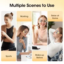 This eye massager is best used daily, whether in the morning to reduce puffiness, before makeup application for a smoother base, or in the evening to relax tired eyes. Simply place the gel patches under your eyes, turn on your desired mode, and let the gentle currents do the work — no manual effort required.