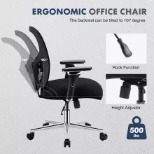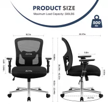One of the standout features of this chair is its wide, heavy-duty seat, designed to comfortably accommodate individuals up to 500 pounds. The oversized seat cushion (22D” x 26.77W”, 4.33″ thick) offers a plush, comfortable experience, making it ideal for taller people or anyone who prefers extra room. The mesh fabric ensures breathability, keeping you cool and comfortable throughout the day.