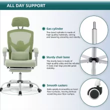 Featuring a breathable mesh backrest, this chair allows for maximum air circulation, keeping you cool throughout the day. The high-back design provides full support for your upper back and shoulders, while the built-in lumbar support pillow alleviates pressure on your lower back, ensuring a healthy and comfortable sitting posture.