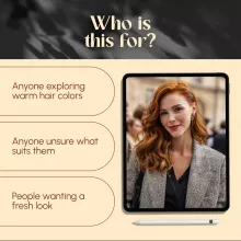 This guide is designed for anyone curious about warm autumn hair colors—whether you’re a seasoned color enthusiast, a first-timer considering a change, or a stylist seeking inspiration. If you want to avoid common coloring mistakes and discover the shades that work best for your natural coloring, this eBook is for you.
