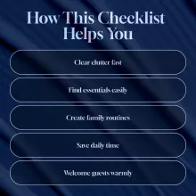 Busy parents, families with kids, or anyone looking to streamline their home and make their entryway both functional and welcoming. Unlike other generic organization resources, this checklist is designed specifically for family life, with practical steps that actually work in real, lived-in homes.