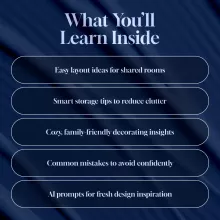 This isn’t just another home décor eBook. It combines real-world decorating advice with modern AI prompts to spark fresh ideas tailored to your needs. You’ll walk away with not only design inspiration but also actionable strategies to make family zones practical, comfortable, and flexible enough to grow with your household.