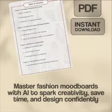 Bring your fashion ideas to life with the Fashion Moodboard Builder With AI—a step-by-step digital guide designed for designers, stylists, and creatives who want to elevate their process. Whether you’re sketching your first collection or refining a professional concept, this eBook shows you exactly how to harness AI tools to craft powerful moodboards that capture your vision. Easy to follow, inspiring, and practical, this guide is perfect for anyone who wants to save time while expanding their creativity.
