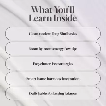 Your home should be your sanctuary—peaceful, energizing, and aligned with your life goals. With Feng Shui for Modern Homes, you’ll gain the clarity and confidence to create a space that truly supports you. Download your copy today and start designing a life that flows with balance, beauty, and harmony.