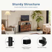 Built with a thickened metal frame and a sturdy wooden top, this TV stand dresser ensures stability and durability. Adjustable feet protect your floors from scratches while keeping the unit balanced on uneven surfaces. For added security, an anti-tilt device can be attached to prevent accidental tipping – a great feature for homes with children or pets.