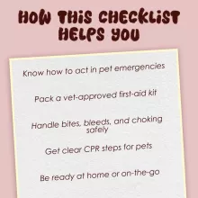 If you’re a dog or cat parent, pet sitter, new puppy owner, or just someone who wants to be prepared, this guide is for you. The First-Aid Cheat Sheet for Pet Owners helps anyone care for pets in an emergency—no vet degree required.