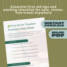 Stay healthy, safe, and confident no matter where your adventures take you. Grab your First Aid for Travelers Printable Cheat Sheet today and travel with total peace of mind.