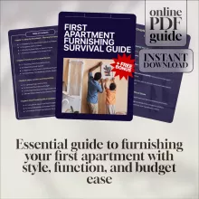 Don’t let moving into your first apartment become overwhelming. With the First Apartment Furnishing Survival Guide, you’ll have everything you need to plan, furnish, and decorate with ease. Download your digital guide today and start creating the stylish, comfortable home you’ve been dreaming of.