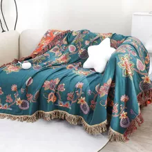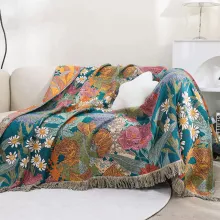 Measuring 78.7 x 90.5 inches, this generously sized blanket can be used as a light bedspread, a decorative sofa throw, or even as a picnic mat or travel companion. The intricate double-sided yarn-dyed weaving technique offers two elegant looks in one, while ensuring durability and long-lasting color. Whether draped casually over a couch or spread across a bed, this floral towel blanket instantly elevates your living space with a cozy, natural aesthetic.