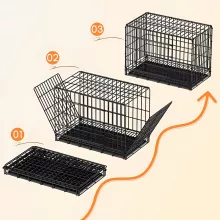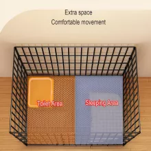 This practical pet house features a durable iron frame with a folding design that makes storage and setup a breeze. It’s ideal for indoor use and includes an easy-to-clean toilet tray to support house training or maintain a hygienic environment. Whether you’re crate training a puppy or giving your adult dog a resting space, this dog cage offers function and flexibility in one thoughtful design.
