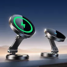 This foldable magnetic car phone holder is the perfect travel companion for busy drivers who need a secure mount and fast charging in one. Its premium design and powerful magnets guarantee a safe, clutter-free, and convenient driving experience. Say goodbye to tangled cables and low battery worries. Simply attach your phone, rotate to your ideal angle, and hit the road with confidence.