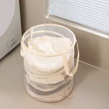 Say goodbye to messy laundry days with this Foldable Mesh Laundry Hamper. Designed for convenience and style, this portable laundry basket helps you keep dirty clothes neatly contained wherever you go. Made from durable polyester, it’s lightweight yet sturdy enough to hold all your laundry without losing shape. Its breathable mesh sides allow air circulation to prevent odors and mildew, making it perfect for everyday household use or travel.