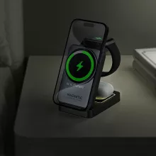 Keep your devices powered up effortlessly with this versatile 3-in-1 magnetic wireless charging stand. Designed to charge your phone, smartwatch, and wireless earbuds all at once, it saves time and keeps your desk or nightstand clutter-free. With its sleek, foldable design, it easily fits into your bag, making it perfect for travel, work, or home use.