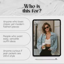 - Get expert styling tips that make your jean jacket look modern and fresh.