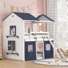 With a total size of 81.9 x 78.2 x 83.1 inches, this full-size house-style loft bunk bed creates a beautiful and interactive bedroom setup. It’s perfect for kids who want a little more magic in their daily routine and for parents who appreciate functional design that doesn’t sacrifice style. Add it to your cart and give your child a space they’ll love to sleep—and play—in!