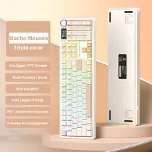 From its soft, HiFi gasket mount design to a stunning 1.14-inch TFT smart display, this keyboard is as functional as it is beautiful. It features RGB backlighting, a multi-function control knob, and hot-swappable switches, giving you complete control over how your keyboard looks and feels. With a 1000Hz polling rate and 3ms response time, every input registers in real time — no lags, no missed commands.