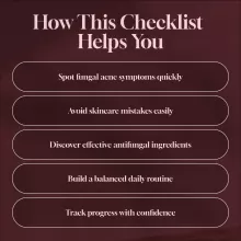 Don’t let confusion hold you back. Download Fungal Acne Or Not? Clear-Skin Checklist today and finally get the guidance you need to build a skincare routine that works. Your journey to balanced, healthy skin starts here.