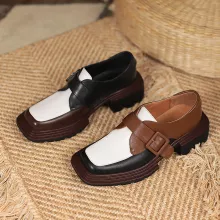 Looking for the perfect blend of timeless style, reliable comfort, and a unique twist? These Mixed Color Genuine Leather Women’s Loafers are a must-have addition to your wardrobe. Crafted from premium cow leather and designed with a square toe and thick low heel, these retro-inspired shoes strike the ideal balance between elegance and ease. Whether you’re heading to the office, running errands, or meeting friends for brunch, they deliver unbeatable style without sacrificing comfort.
