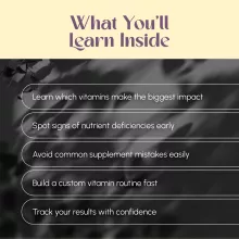 - Chapter 2: A deep dive into the top vitamin supplements you can’t miss, including Biotin, Vitamin C, Vitamin E, A, D, Zinc, and Collagen