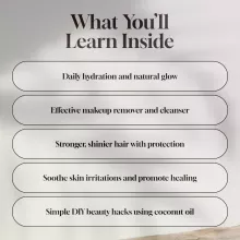 - Chapter 1: Coconut Oil Basics — Understand the difference between virgin vs refined, and learn why coconut oil is packed with skin and hair-loving nutrients.