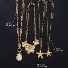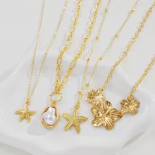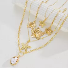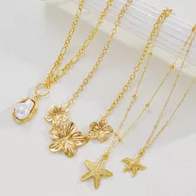 - Set of 4 unique gold necklaces featuring starfish and flower pendants