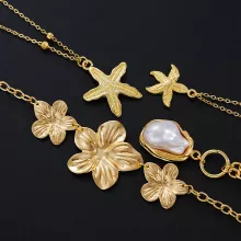 Each necklace in this eco-friendly set features intricate starfish and flower pendants in a radiant gold finish, crafted from high-quality zinc alloy for durability and shine. Lightweight and comfortable, the pendants dangle delicately to add a whimsical, feminine touch to any outfit. Layer them together for a bold statement or wear them individually for a softer, minimalist look — the choice is yours!
